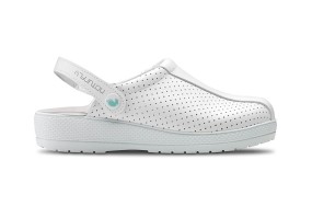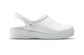 Su suela es antideslizante, antiestática y antibacteriana. Cuenta con una plantilla ergonómica para una mejor pisada y un mayor confort. Sus materiales son ligeros y fáciles de limpiar.